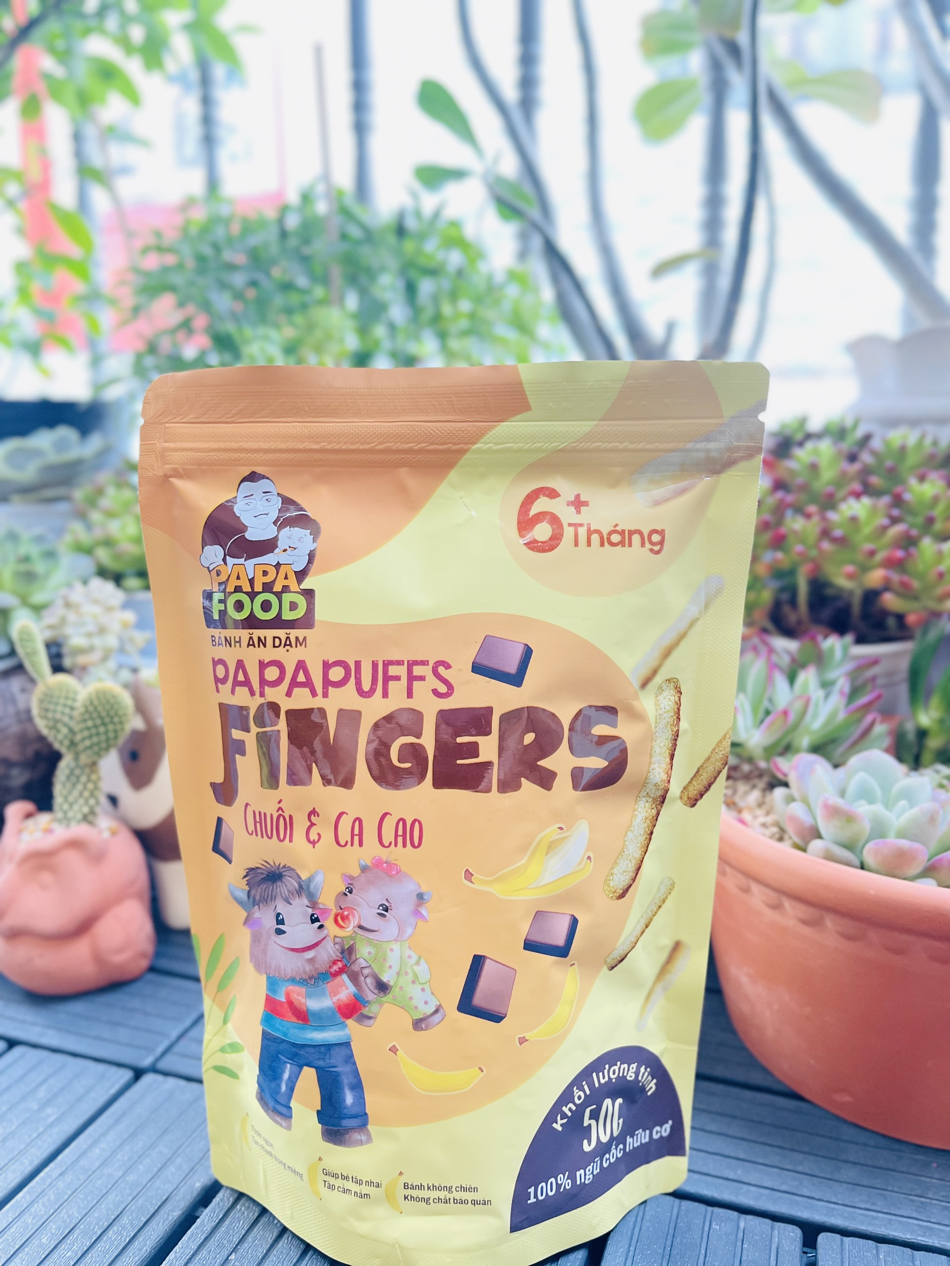 Mua tại Tiktok- Tên sản phẩm: Bánh ăn dặm PAPAPUFFS FINGERS - VỊ CHUỐI VÀ CACAO .