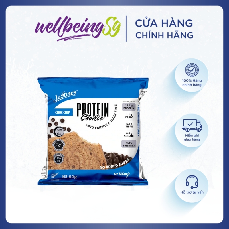 Bánh Quy Sô Cô La Justines Protein Cookie, Phù Hợp Chế Độ Ăn Kiêng Keto, Không Đường, Không Chứa Gluten Và Lúa Mì, Bổ Sung Đạm Và Canxi, Hộp 12 Cái Tươi như bánh vừa