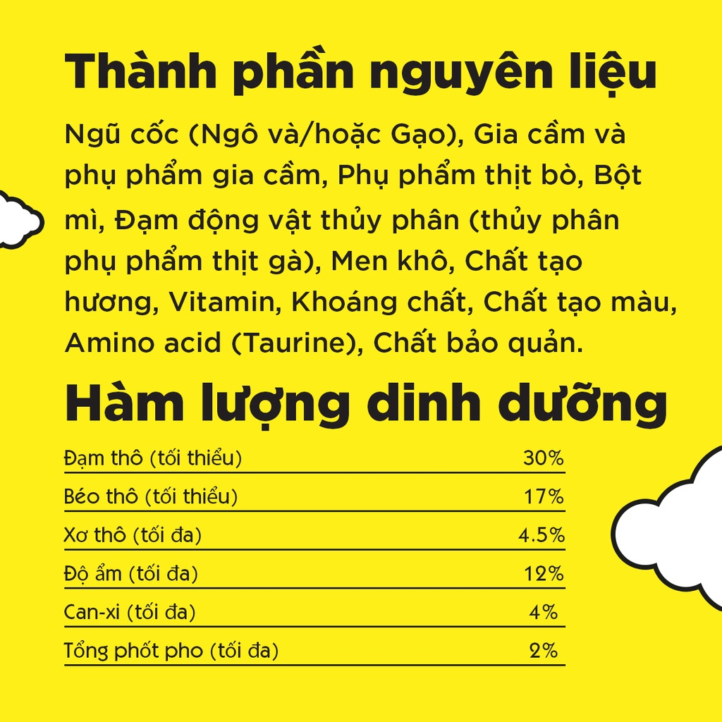 -----------------------------------Giới thiệu sản phẩm------------- -------------------------- Sản xuất theo công nghệ Pháp tại Việt Nam Vị thức ăn: Vị cá ngừ (Tuna flavored) Quy cách đóng gói: thùng 6 gói x 1.300 gram/gói Thành phần dinh