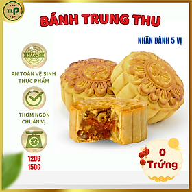 Bánh trung thu TLP với nhân đa dạng (thập cẩm, đậu xanh, khoai môn, dừa, trà xanh) kèm trứng muối và khối lượng phong phú (150g,220g) không chỉ mang đến sự lựa chọn phong phú