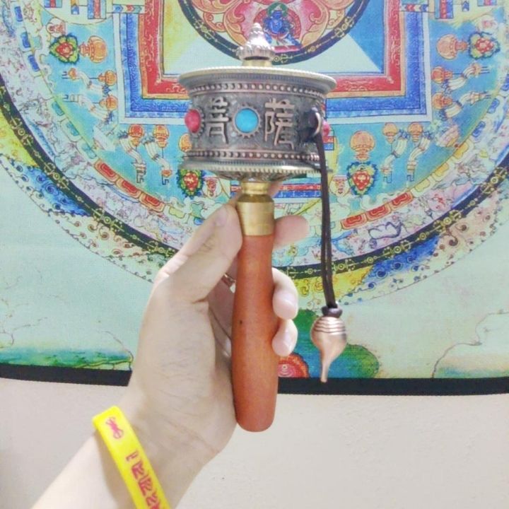 Bánh xe cầu nguyện Kinh luân tay xoay và đế sen - Cầu bình an, may mắn