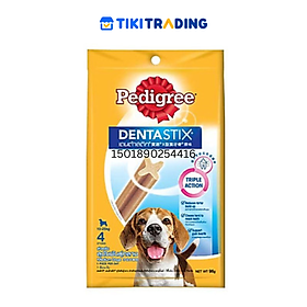 Pedigree DentaStix có hình dạng chữ X của DentaStix làm sạch kẽ răng và lợi chó yêu nhà bạn, giúp chúng có hàm răng sạch sẽ. Sản phẩm với khối lượng 86g, phù hợp cho những chú chó lớn.