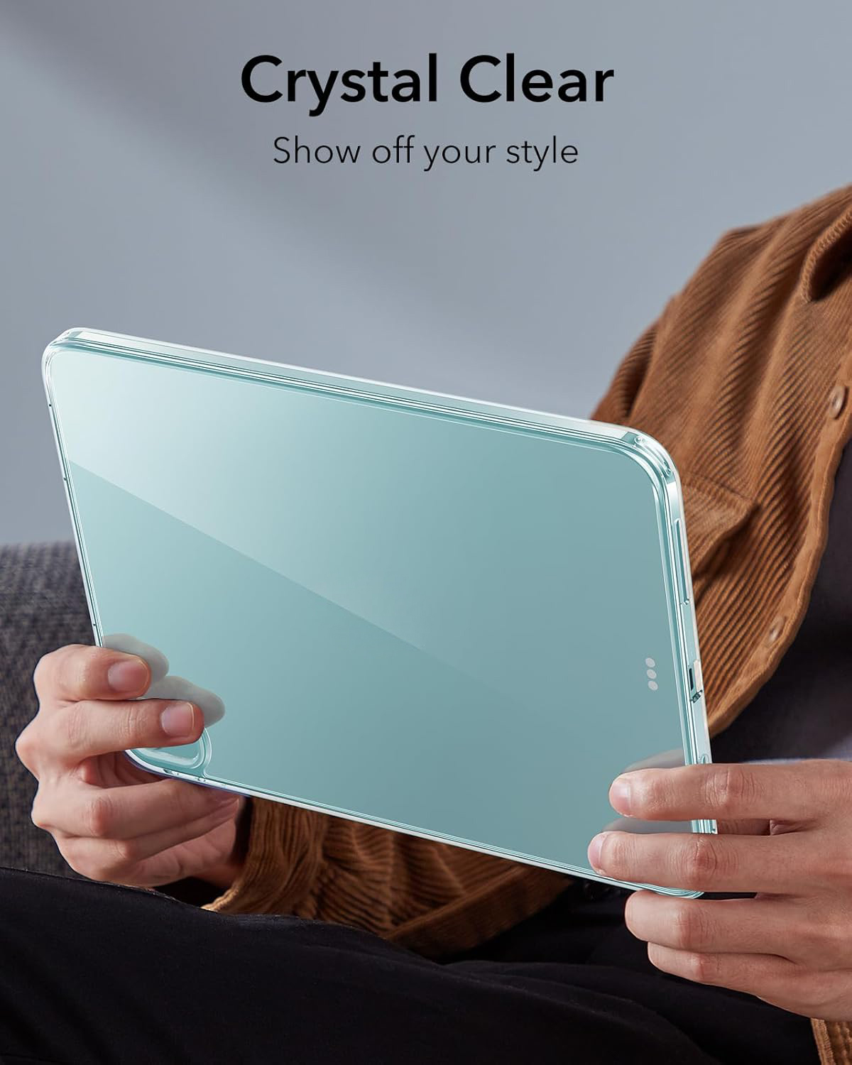 Trong suốt như pha lê: mặt sau bằng acrylic cứng giúp logo của iPad luôn hiển thị và trong suốt lâu hơn để bạn có thể khoe phong cách thực sự của máy tính bảng.