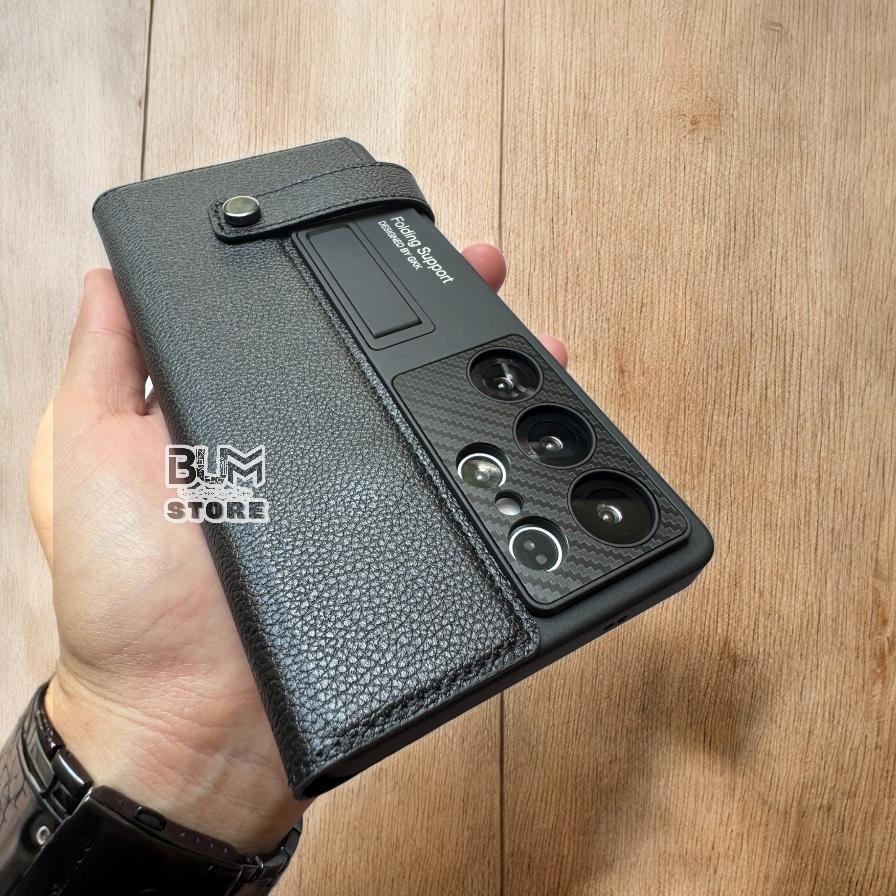 ✨Bao Da Cao Cấp Cho Samsung Galaxy S25 Ultra / S24 Ultra Có Giá Đỡ , Ngăn Để Thẻ , Quai Gài , Bảo Vệ Camera