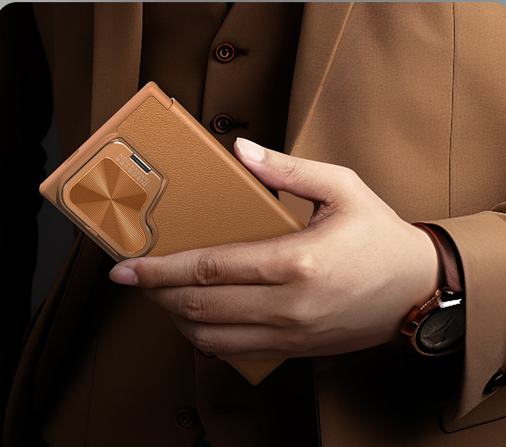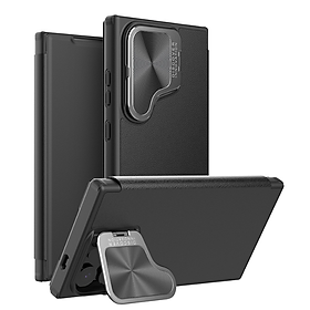 ✨Bao da cho SamSung Galaxy S24 Ultra chính hãng Nillkin Qin Prop Leather có ngăn cài thẻ ATM, thẻ chung cư, chống sốc, có nắp đậy camera sau và chân chống - Hàng chính hãng