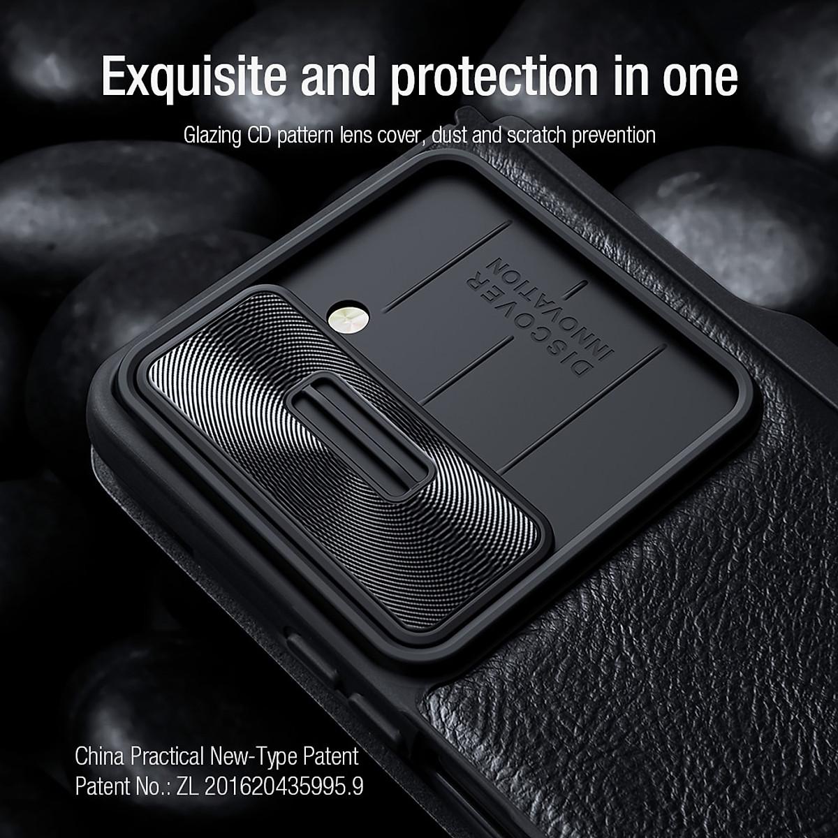 Case bao da chống sốc cho Samsung Galaxy Z Fold 6 trang bị nắp bảo vệ Camera và ngăn đựng S-Pen hiệu Nillkin Qin Pro thiết kế với nắp bảo vệ Camera có thể kéo lên hay thả xuống tiện dụng và phần viền nhô lên 0.2mm giúp bảo vệ camera chống trầy, chống bụi cực kỳ tốt.