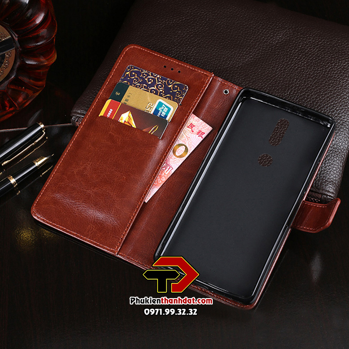 Bao da dạng ví có quai gài được làm từ chất liệu da cao cấp, bền chắc, rất khó bị trầy, bong tróc và khó bám bẩn. Mặt trước bao da có ngăn đựng tiền,