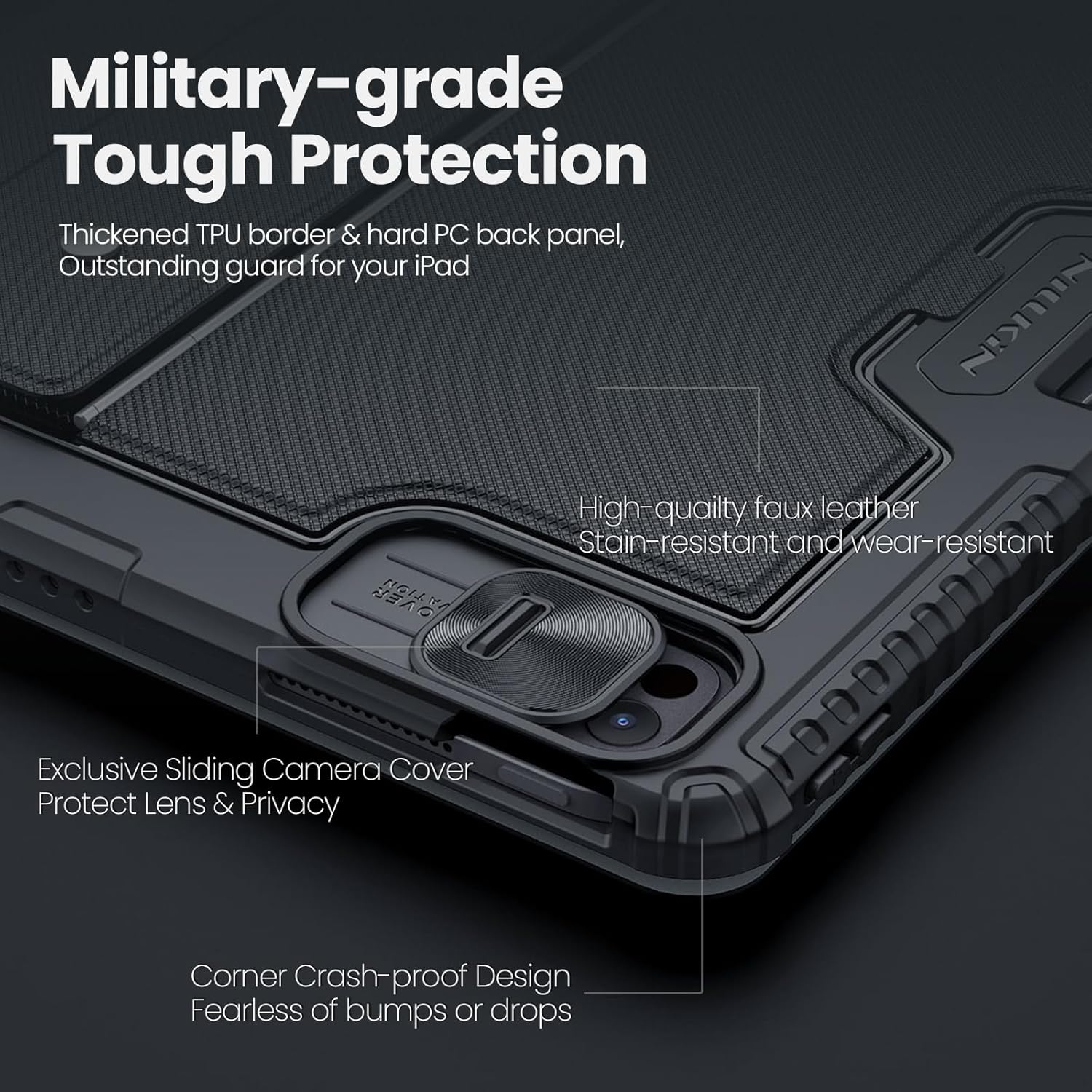 Bao Da Bàn Phím Nillkin Carry Go Cho iPad Pro 11/13 inch M4 2024, iPad Air 6 M2, Air 4, Air 5 - Có Đèn Nền, Tay Cầm Từ Tính, Chất Lượng Cao - Hàng