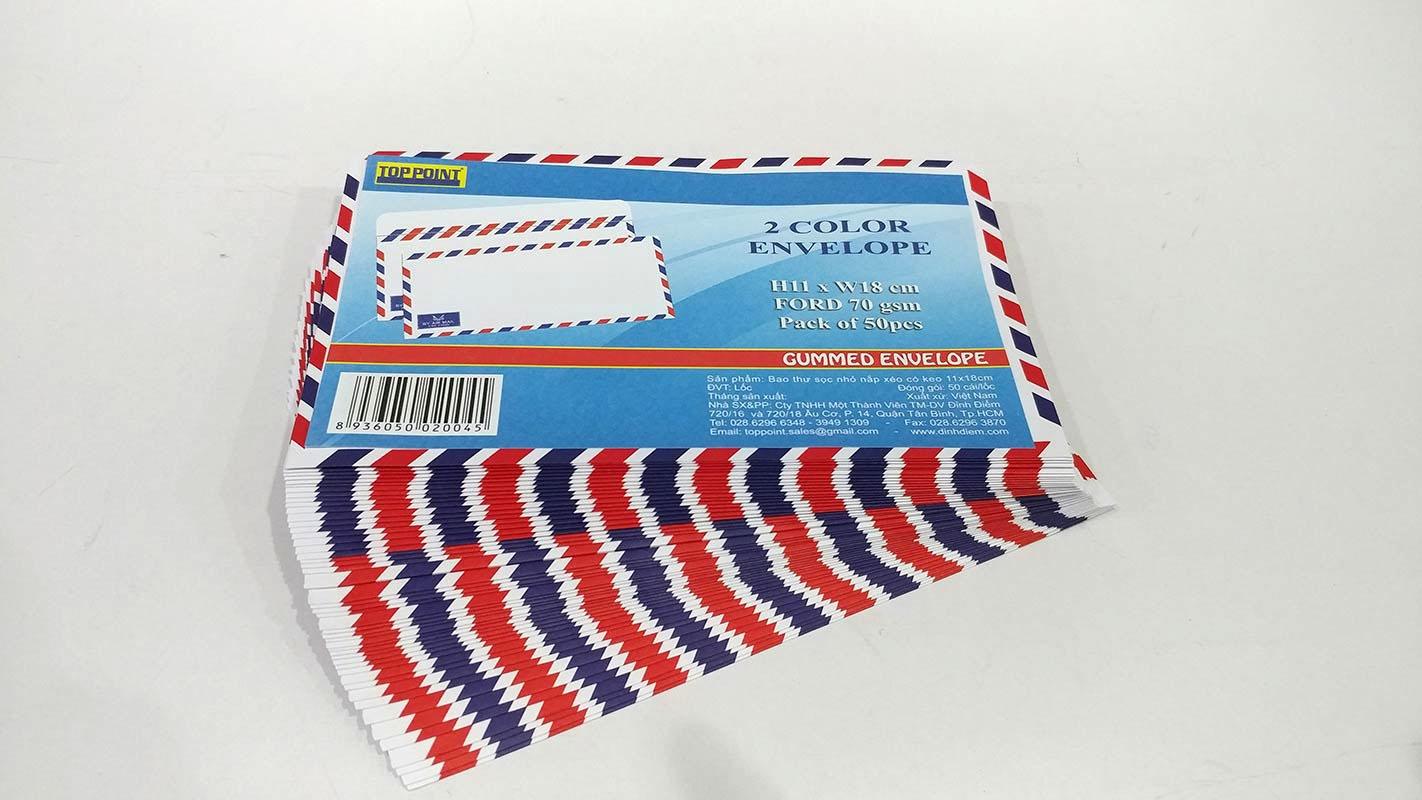 Bao Thư Sọc Nhỏ Nắp Xéo Có Keo Bao Thư gây ấn tượng bởi thiết kế sọc nhỏ đỏ - xanh xinh xắn. Sản phẩm được sản xuất tại Việt Nam, không chứa các thành