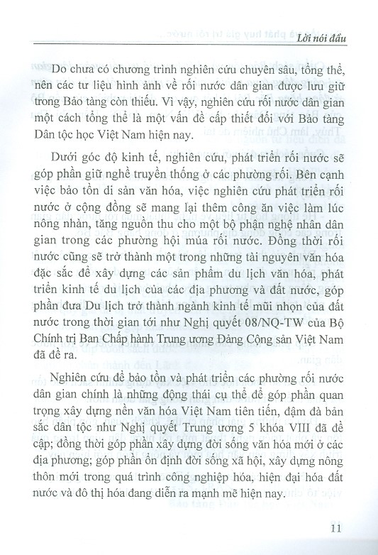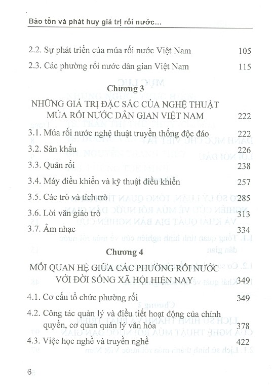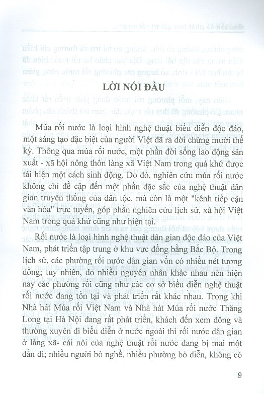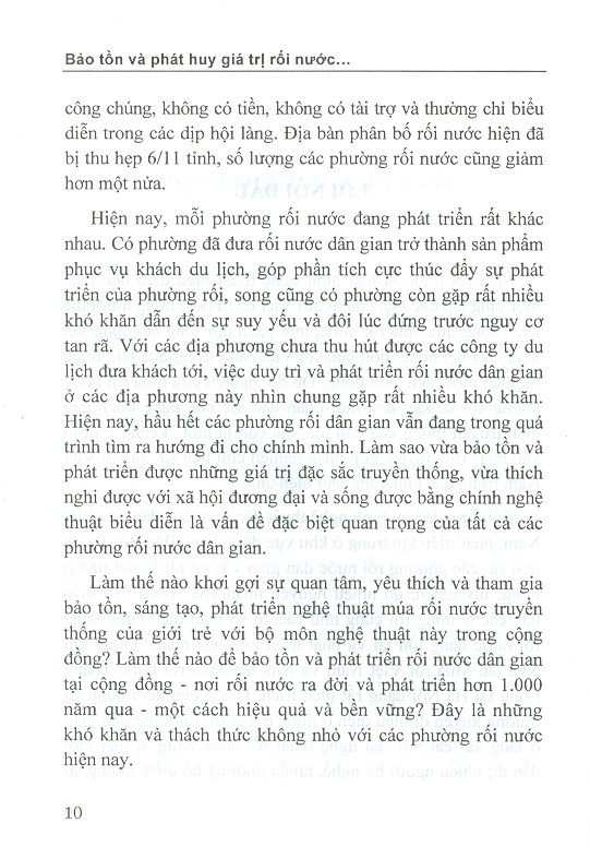 Cuốn sách "Bảo tồn và phát huy giá trị rối nước dân gian tại cộng đồng (Qua nghiên cứu các phường rối nước dân gian ở đồng bằng Bắc Bộ)" trình bày tổng quan về