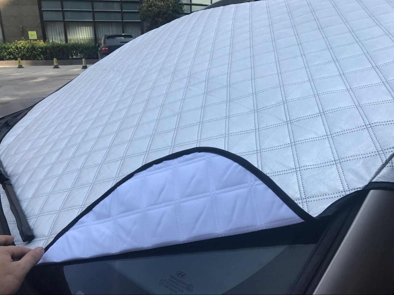 Bạt che nắng kính ô tô với chất liệu vải Peva mặt ngoài chống nắng, chống thấm nước, bên trong là lõi bông mềm cách nhiệt chống hấp thụ nhiệt khi để để xe ô tô dưới ánh nắng mặt trời.