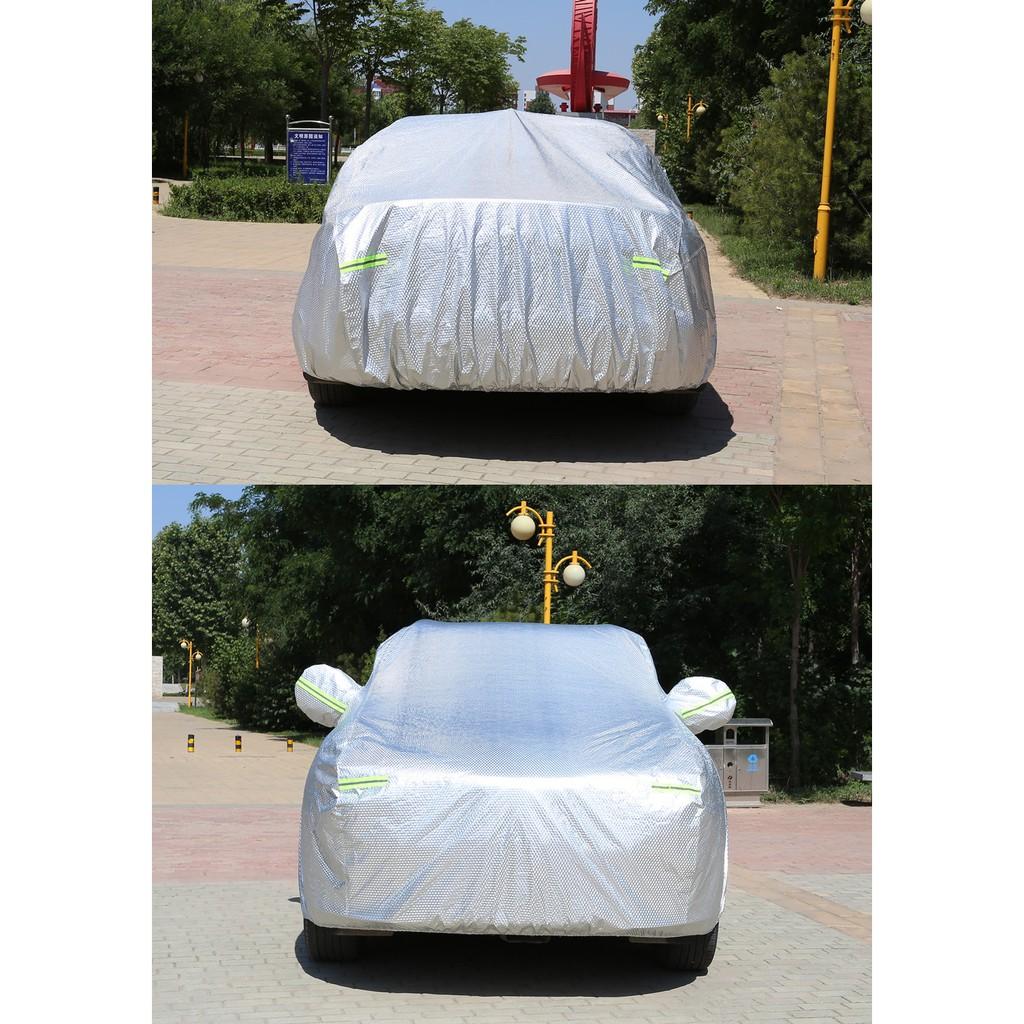 Bạt phủ xe ô tô 7 chỗ 3 lớp tráng nhôm cách nhiệt, chống nóng, chống thấm, chống bụi bẩn - Bạt phủ xe có mặt ngoài là chất liệu vải PEVA tráng nhôm phản