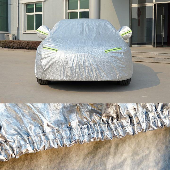 Bạt phủ xe ô tô 7 chỗ 3 lớp tráng nhôm cách nhiệt, chống nóng, chống thấm, chống bụi bẩn - Bạt phủ xe có mặt ngoài là chất liệu vải PEVA tráng nhôm phản