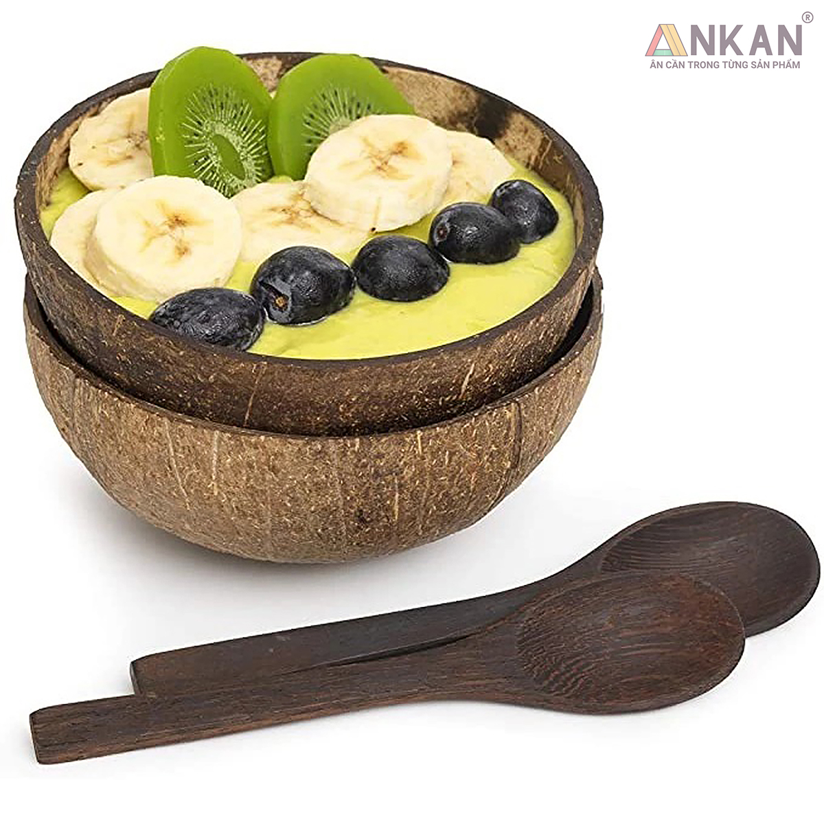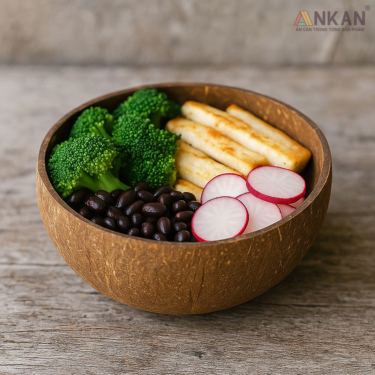 ✨Bát Gáo Dừa Mộc Tự Nhiên ANKAN – Dùng Ăn Salad, Trái Cây, Ngũ Cốc – Chén Dừa Thủ Công Việt Nam