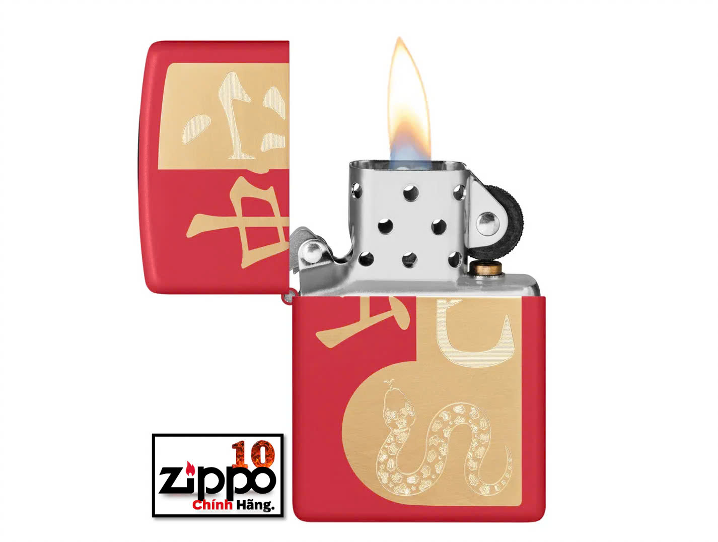 Đón chào năm con Rắn vào năm 2025 với chiếc bật lửa Red Matte tuyệt đẹp này. Tượng trưng cho sự khôn ngoan, quyết tâm và bí ẩn, con rắn cuộn tròn bên dưới ký tự Châu Á truyền thống của nó với tông màu đồng thau sang trọng với quy trình kết hợp Laser/Khắc tự động của Zippo. Được đóng gói trong một hộp đựng dạng quà tặng. Để tối ưu hiệu suất, hãy dùng nhiên liệu bật lửa của Zippo.