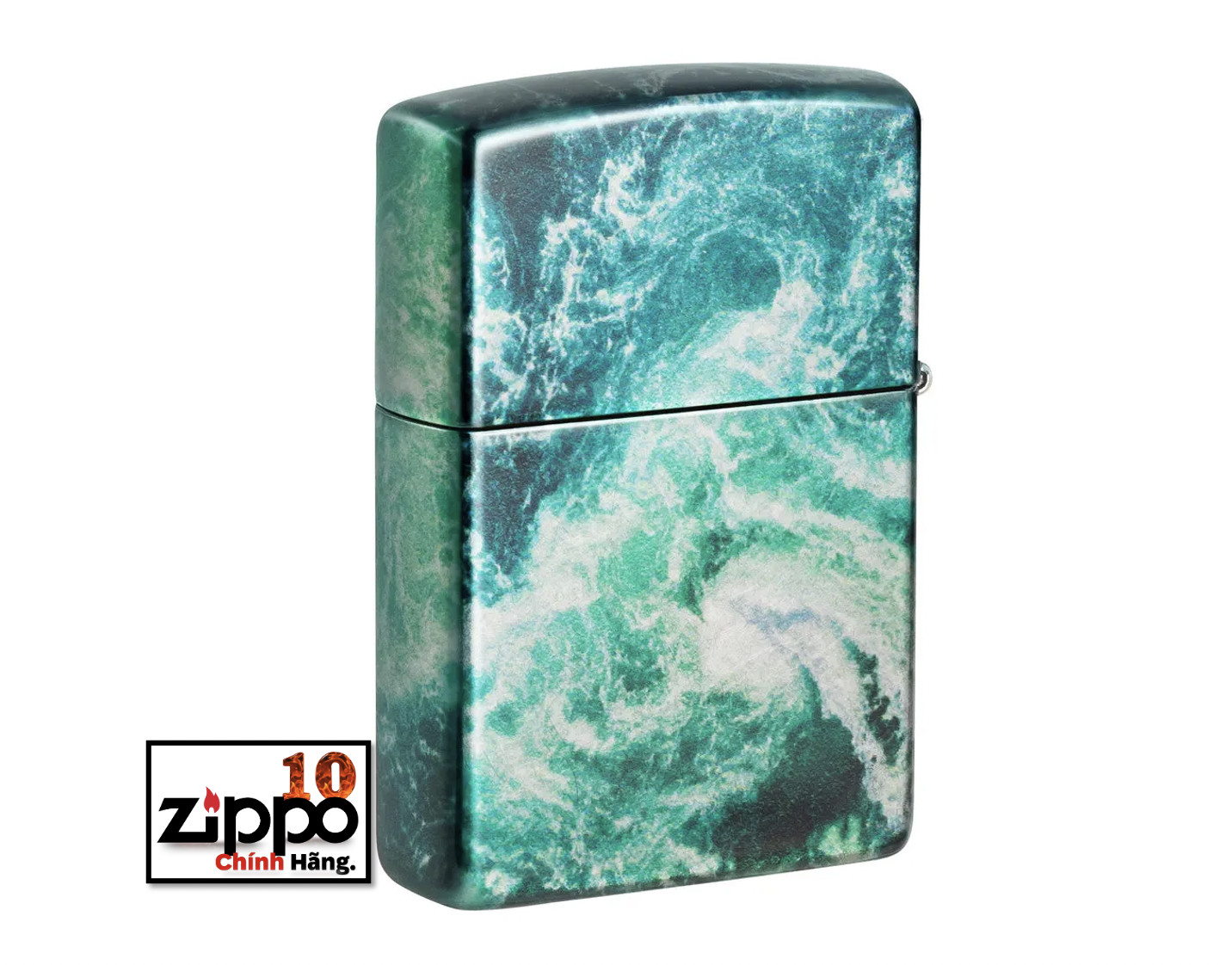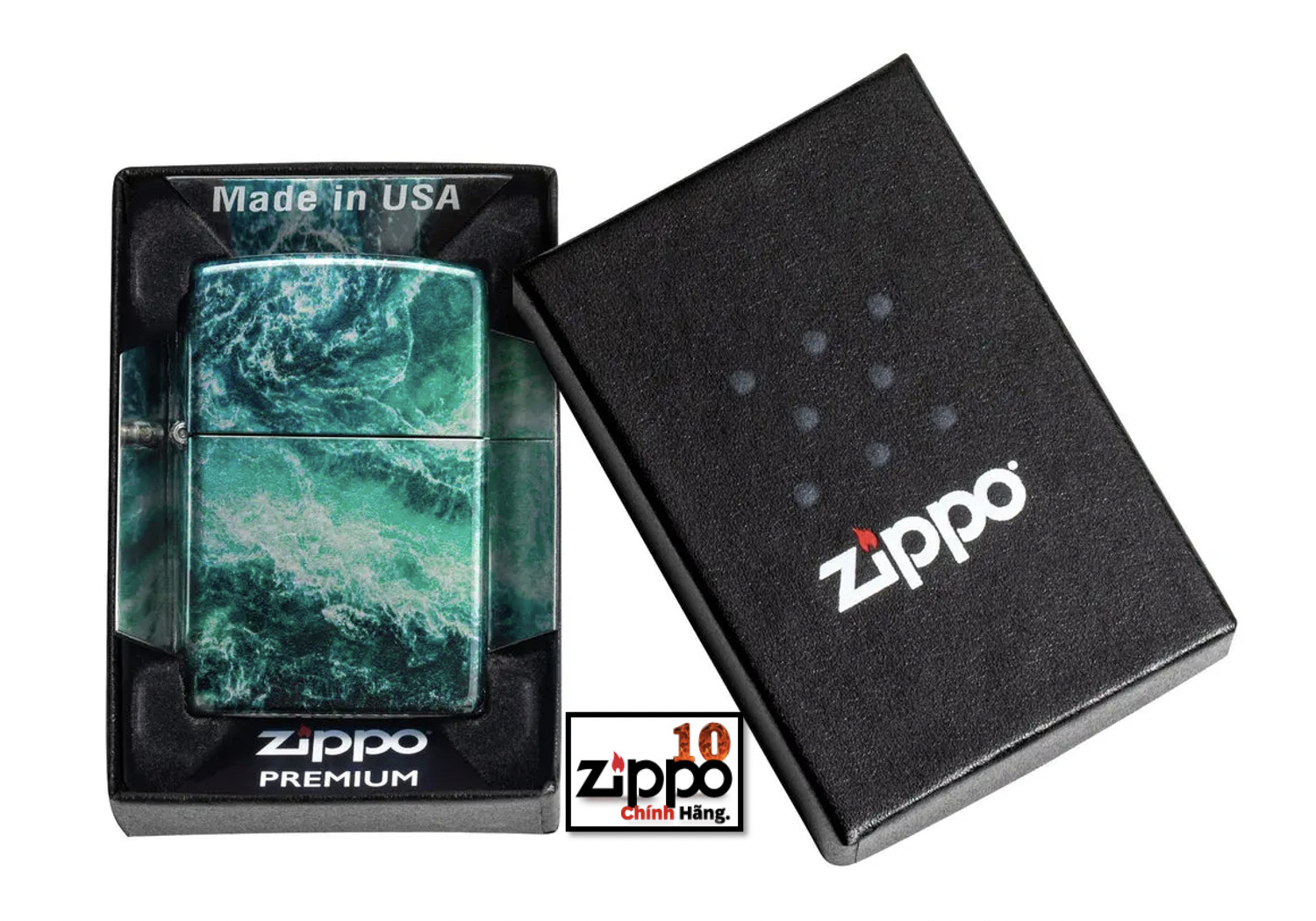 Thiết kế mới hoa văn vân đá cẩm thạch được tạo trên chiếc bật lửa Zippo đồng thau, nền mạ High Polish Black bằng qui trình in hình ảnh màu 360° của Zippo. Được đóng