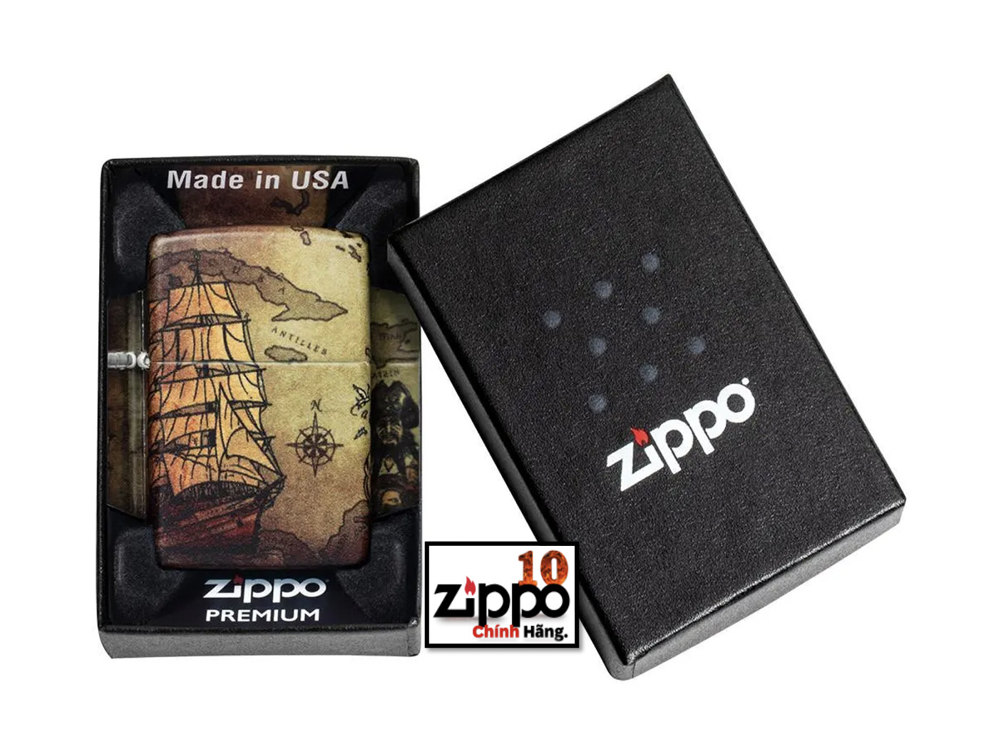 Bạn đã tìm thấy chiến lợi phẩm mà bạn đang tìm kiếm trong thiết kế Tàu Cướp biển này. Thiết kế này sử dụng quy trình Màu 540 mới của Zippo, cho phép phủ hoàn toàn bề mặt của bật lửa với các tác phẩm nghệ thuật chính xác. Bật lửa này có bản đồ cổ điển, con tàu và cướp biển với dấu X màu đỏ đánh dấu vị trí của kho báu bị chôn giấu. Hãy trân trọng tác phẩm này và đưa nó vào bộ sưu tập của bạn trước khi nó ra khơi! Được đóng gói trong một hộp đựng dạng quà tặng. Để tối ưu hiệu suất, hãy dùng nhiên liệu bật lửa của Zippo.