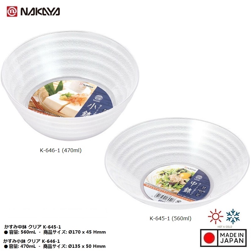 Bát nhựa Nakaya Kasumi Ø170mm - 560ml - Hàng nội địa Nhật Bản nhập khẩu chính hãng Chất liệu: Nhựa Polyethylene Terephthalate cao cấp kháng khuẩn an toàn, không chứa BPA. Khả năng chịu được