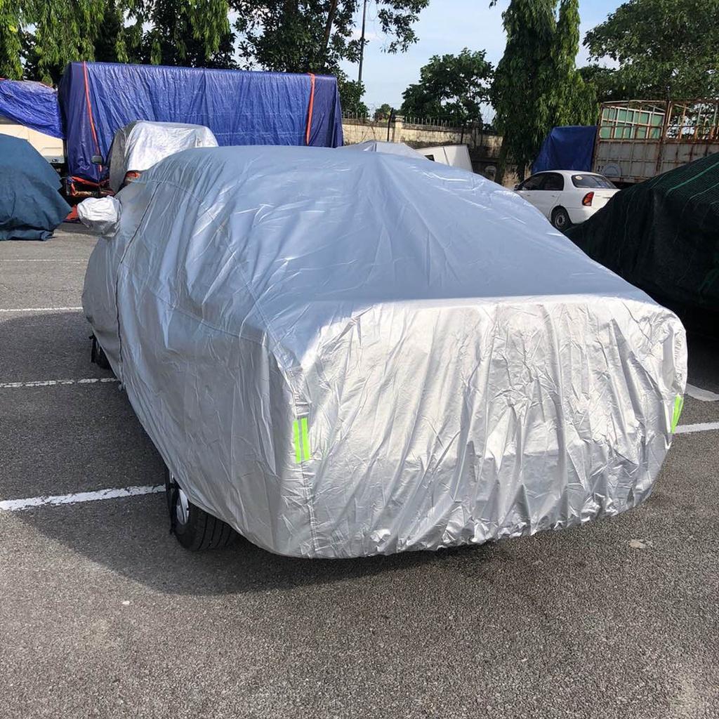 Bạt phủ xe ô tô 7 chỗ 3 lớp tráng nhôm cách nhiệt, chống nóng, chống thấm, chống bụi bẩn - Bạt phủ xe có mặt ngoài là chất liệu vải PEVA tráng nhôm phản