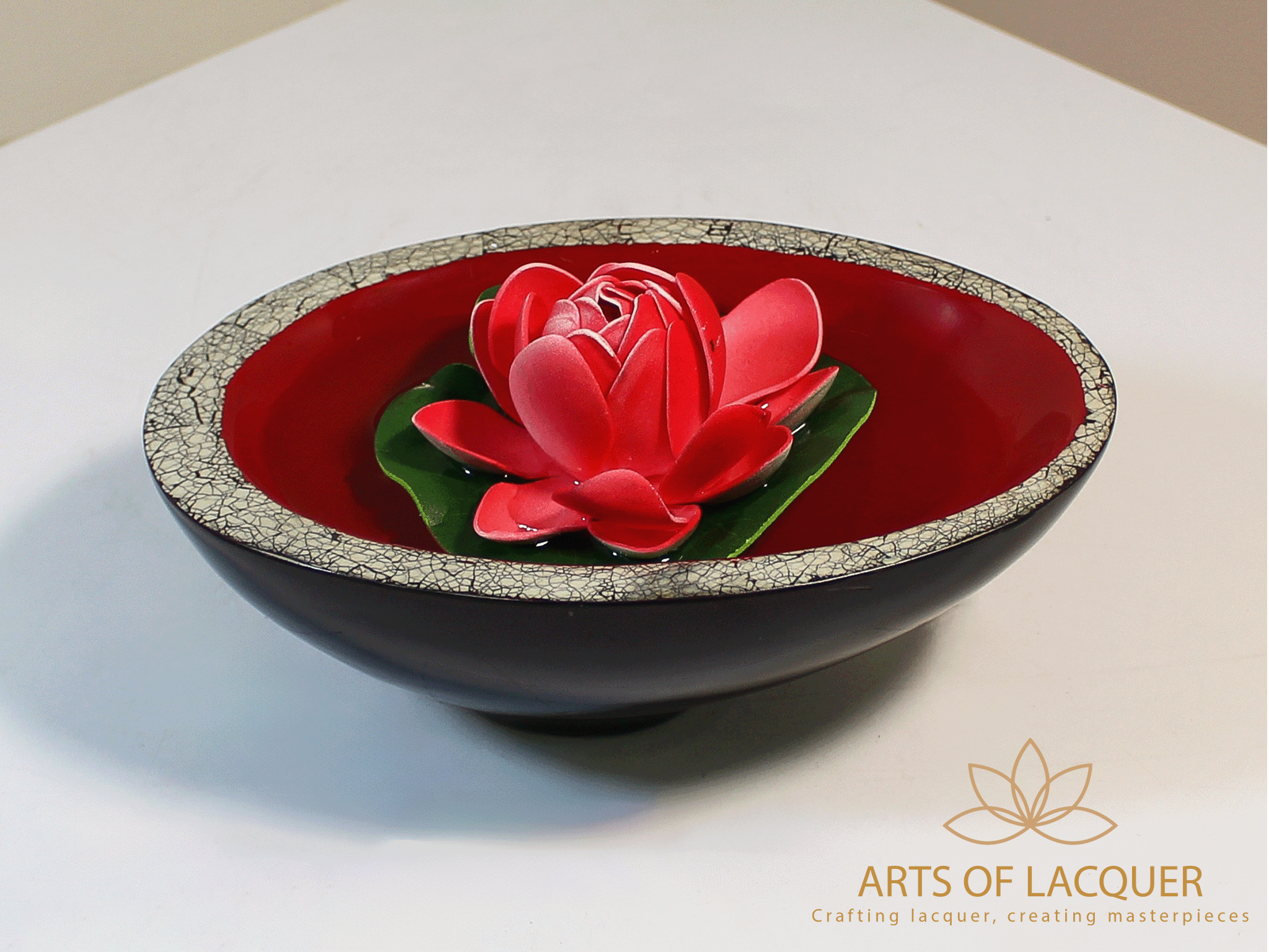 - Thủ công tinh xảo: Mỗi chiếc bát được tạo hình và sơn mài bởi các nghệ nhân tài hoa, tạo nên bề mặt giống như kính phản chiếu vẻ đẹp của hoa nổi.