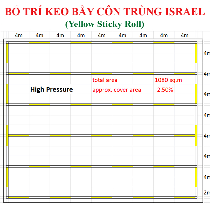 - Tiết kiệm chi phí: Nguyên tắc giăng bẫy màu vàng Isarel là “Giăng trên đường bay của côn trùng”. Giăng 4 mét dài và không giăng 8 mét và giăng lại 4 mét