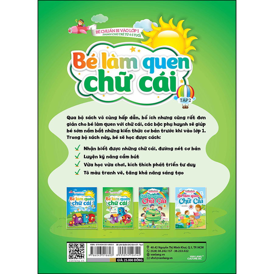 Mua tại TiktokQua bộ sách vô cùng hấp dẫn, bổ ích nhưng cũng rất đơn giản cho bé làm quen với chữ cái, các bậc phụ huynh sẽ giúp bé sớm nắm bắt những kiến thức cơ bản trước khi vào lớp 1. Trong bộ sách này, bé sẽ học được cách: