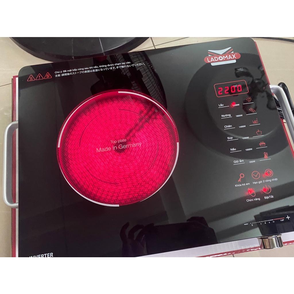 - Mặt bếp hồng ngoại bằng kính chịu nhiệt có khả năng chịu nhiệt tốt, vệ sinh đơn giản: Bếp hồng ngoại Ladomax HA-666 mặt bếp có độ bền cao, luôn sáng bóng, đẹp mắt
