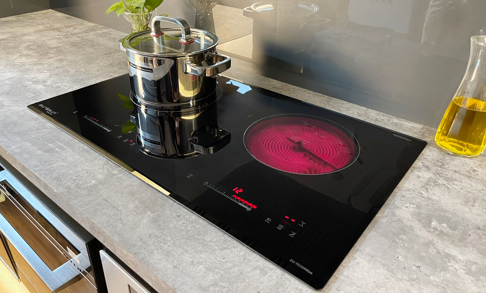 Bếp từ Eurosun EU-TE509Max sở hữu 2 vùng nấu rộng rãi giúp bạn chế biến được nhiều món ăn cùng lúc. Lò trái cảm ứng từ, lò phải là bếp hồng ngoại 2 vòng nhiệt tiện dụng. Bếp từ Eurosun EU-TE509Max thiết kế 4 cạnh vát sang trọng và hiện đại. Mặt kính EURO Platinum Ceramic, chống xước hiệu quả, chịu nhiệt cao, chống sốc nhiệt.