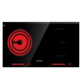 Bếp điện từ kết hợp: 01 điện + 01 từ Đầu đốt EGO High light Made In Germany 02 vòng nhiệt Mặt kính crystal siêu bền, chịu lực chịu sốc nhiệt IGBT SIMENS Made In
