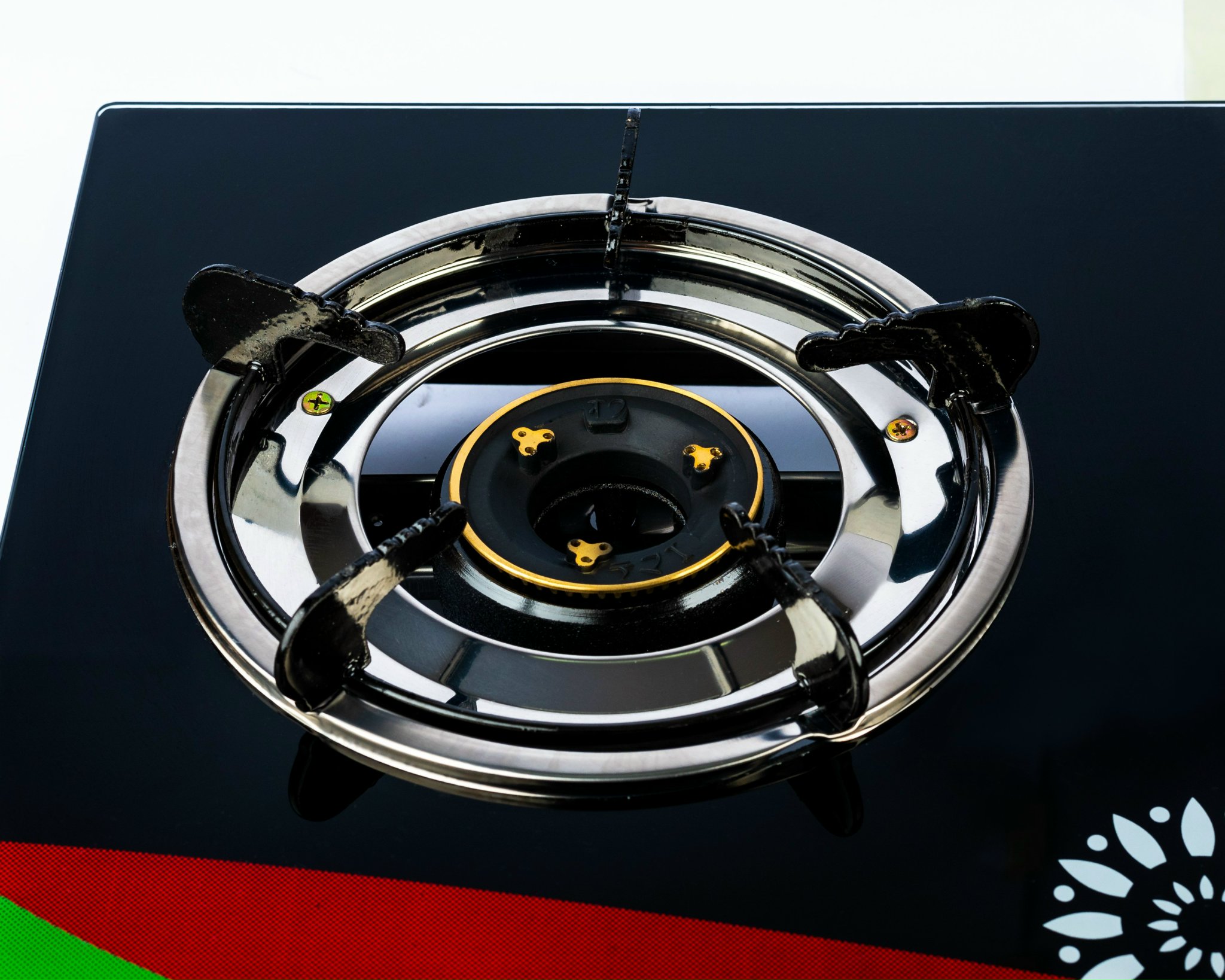 * Mặt kiếng cao cấp chịu lực, chịu nhiệt, thiết kế hoa văn sang trọng;  - Thân bếp làm bằng inox chống rỉ sét, cao 60mm;   - Núm vặn kiểu Rinnai;   - Kiềng thép sơn