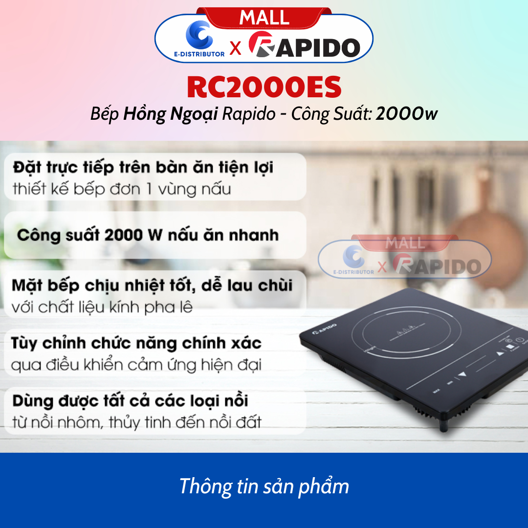 1*Thông số kĩ thuật bếp hồng ngoại đơn Rapido RC2000ES - Công suất 2000w