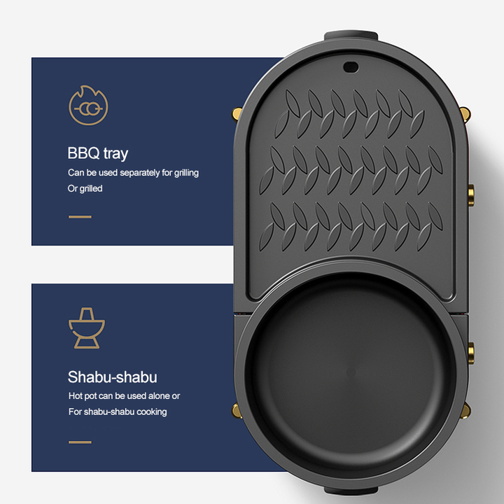 - Bếp lẩu nướng có tới 2 nguồn riêng, giúp bạn điều chỉnh nhiệt độ nướng hoặc nhiệt độ nấu lẩu dễ dàng