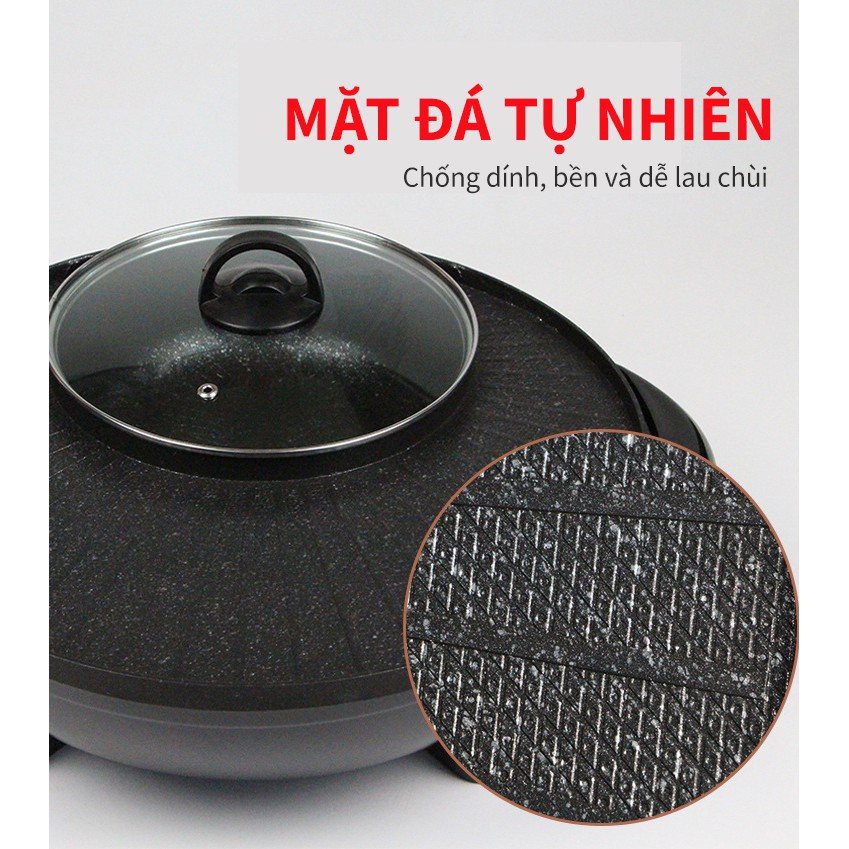 Nồi lẩu nướng điện đa năng 2 trong 1, nướng siêu chống dính cùng với lẩu 2 ngăn tiện lợi