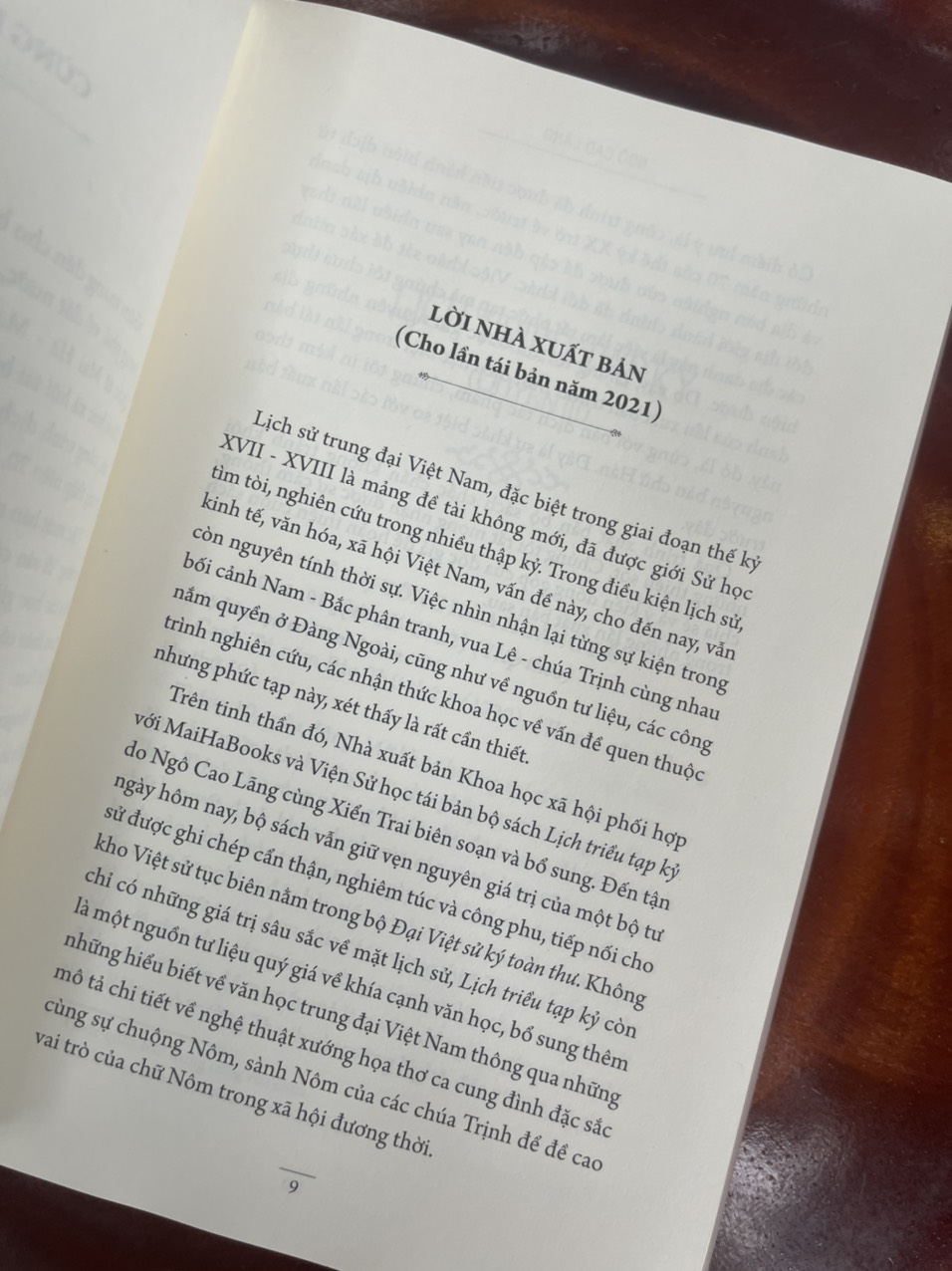 Trên tinh thần đó, Nhà xuất bản Khoa học xã hội phối hợp với MaiHaBooks và Viện Sử học tái bản bộ sách Lịch triều tạp kỷ do Ngô Cao Lãng cùng Xiển Trai biên soạn và bổ sung. Đến tận ngày hôm nay, bộ sách vẫn giữ vẹn nguyên giá trị của một bộ tư sử được ghi chép cẩn thận, nghiêm túc và công phu, tiếp nối cho kho Việt sử tục biên nằm trong bộ Đại Việt sử ký toàn thư. Không chỉ có những giá trị sâu sắc về mặt lịch sử, Lịch triều tạp kỷ còn là một nguồn tư liệu quý giá về khía cạnh văn học, bổ sung thêm những hiểu biết về văn học trung đại Việt Nam thông qua những mô tả chi tiết về nghệ thuật xướng họa thơ ca cung đình đặc sắc cùng sự chuộng Nôm, sành Nôm của các chúa Trịnh để đề cao vai trò của chữ Nôm trong xã hội đương thời.