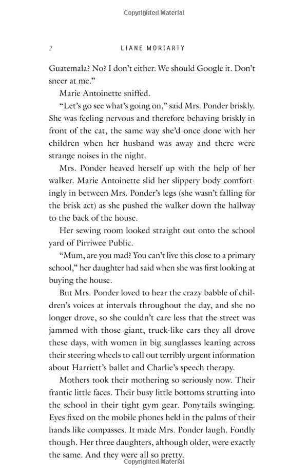 Jane hasn't lived anywhere for longer than six months since her son was born five years ago. She keeps moving in an attempt to escape her past. Now the idyllic coastal town of Pirriwee has pulled her to its shores and Jane feels as if she finally belongs. She finds friends in the feisty and the incredibly beautiful Celeste, two women with seemingly perfect lives - and their own secrets.