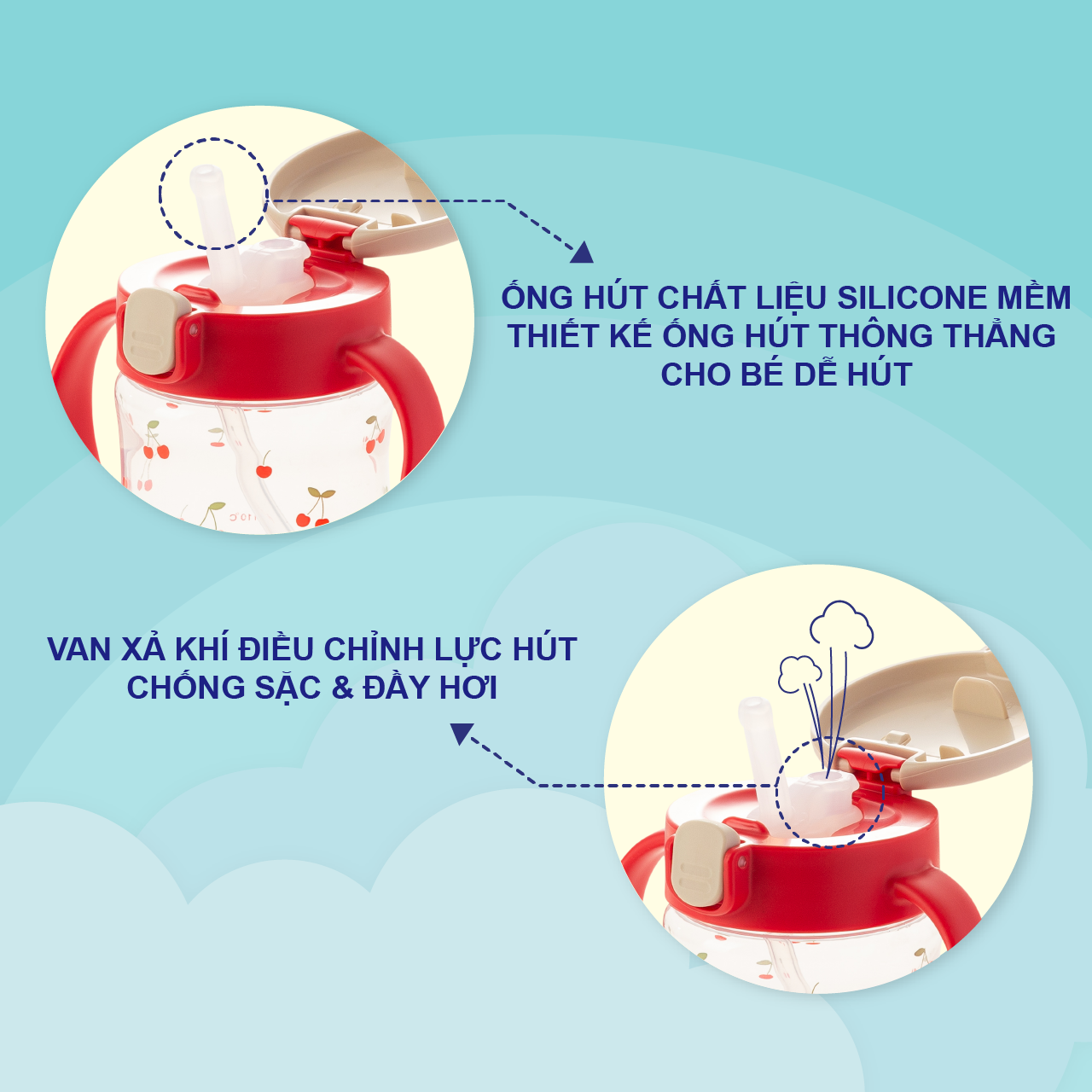 ⍣ Ống hút S-15 silicone mềm, hạn chế đầy hơi và chống sặc nhờ cơ chế đóng-xả khí 1 chiều: khi bé hút nước sẽ lên 1 lượng vừa đủ để bé có khoảng nghỉ để nuốt nước, hạn chế tối đa nguy cơ sặc nước do bé còn nhỏ - bé chưa biết tự điều chỉnh lực hút và lượng nước. Đầu ống hút nghiêng về phía miệng bé để bé dễ uống.