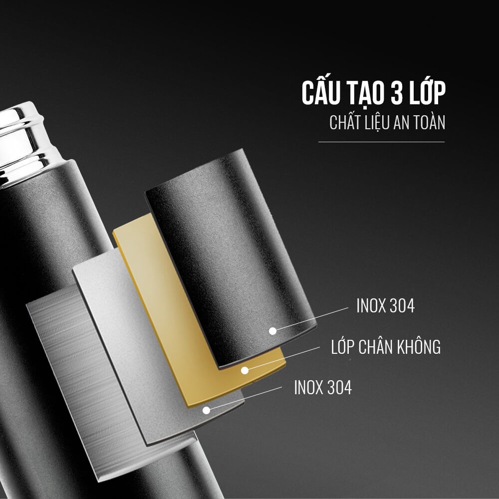 Sử dụng inox 304 tuyệt đối an toàn cho sức khỏe Dung tích 500ml Công nghệ hút chân không tối ưu, giữ nóng 8h và giữ lạnh lên đến 12h Thiết kế mạnh mẽ, có
