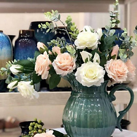 HOA LỤA, BÌNH HOA MẪU ĐƠN CAO CẤP THIẾT KẾ LỌ GẮN ĐÁ PHA LÊ KIỂU DÁNG SANG TRỌNG TRANG TRÍ PHÒNG KHÁCH, TIỆC CƯỚI, SỰ KIỆN AZ-05 Trang trí nội thất đẹp và