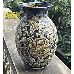 ✨Bình hoa gốm sứ Bát Tràng cao cấp hoạ tiết hoa phù dung nổi
