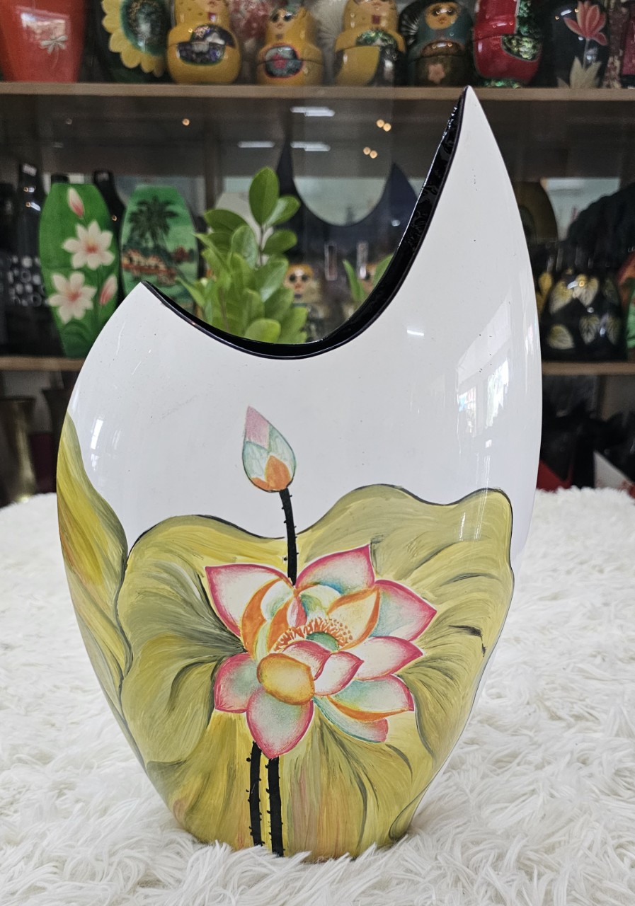 Bình hoa được các nghệ nhân vẽ phong cách hiện đại mang một nét đặc trưng riêng cho sản phẩm, những chi tiết vô cùng sắc xảo màu sắc bắt mắt người xem.
