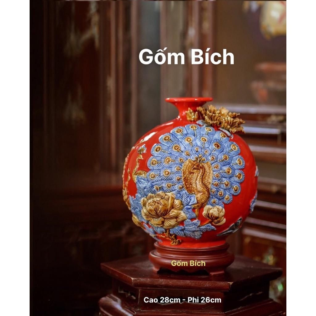 Bình hoa cao cấp Bát Tràng, hàng chuẩn loại 1, dáng chum họa tiết đắp nổi được thực hiện thủ công 100% bởi bàn tay lành nghề của các nghệ nhân làng nghề. Sản phẩm