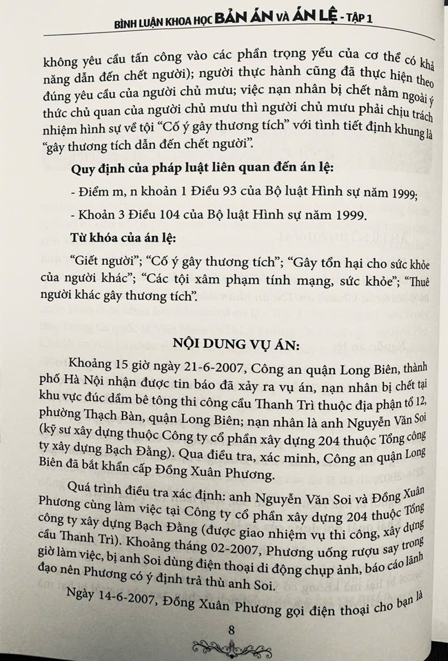 Với mục đích nghiên cứu, tìm hiểu các tình tiết, sự kiện pháp lý trong các bản án, quyết định được lựa chọn là nguồn của án lệ và nội dung các án lệ từ số 01 đến số 18, góp phần vận dụng thống nhất pháp luật trong thực tiễn xét xử về những vấn đề còn có những cách hiểu, áp dụng pháp luật khác nhau, đồng thời tác giả cũng giới thiệu các án lệ từ số 19 đến số 37 và một số án lệ nước ngoài theo hình thức song ngữ Việt - Anh để người đọc có thêm nguồn tài liệu nghiên cứu, Nhà xuất bản Tư pháp xuất bản cuốn Bình luận khoa học bản án và án lệ - Tập 1 của Trọng tài viên Trung tâm Trọng tài quốc tế Việt Nam (VIAC) Tưởng Duy Lượng - nguyên Phó Chánh án Tòa án nhân dân tối cao, người có bề dày trong công tác nghiên cứu khoa học pháp lý, với vốn kiến thức chuyên sâu về lý luận trong lĩnh vực áp dụng pháp luật nói chung và có nhiều năm xét xử giám đốc thẩm, tái thẩm các vụ án dân sự - kinh tế.