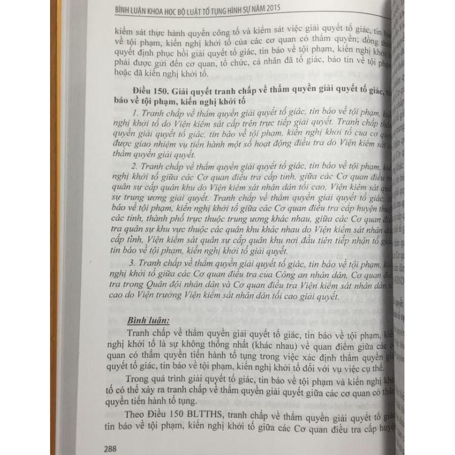 Bình Luận Khoa Học Bộ Luật Tố Tụng Hình Sự Năm 2015 (Tái Bản) Bộ luật tố tụng hình sự 2015 được Quốc hội thông qua ngày 27-11-2015, có hiệu lực từ ngày 1-1-2018. Việc