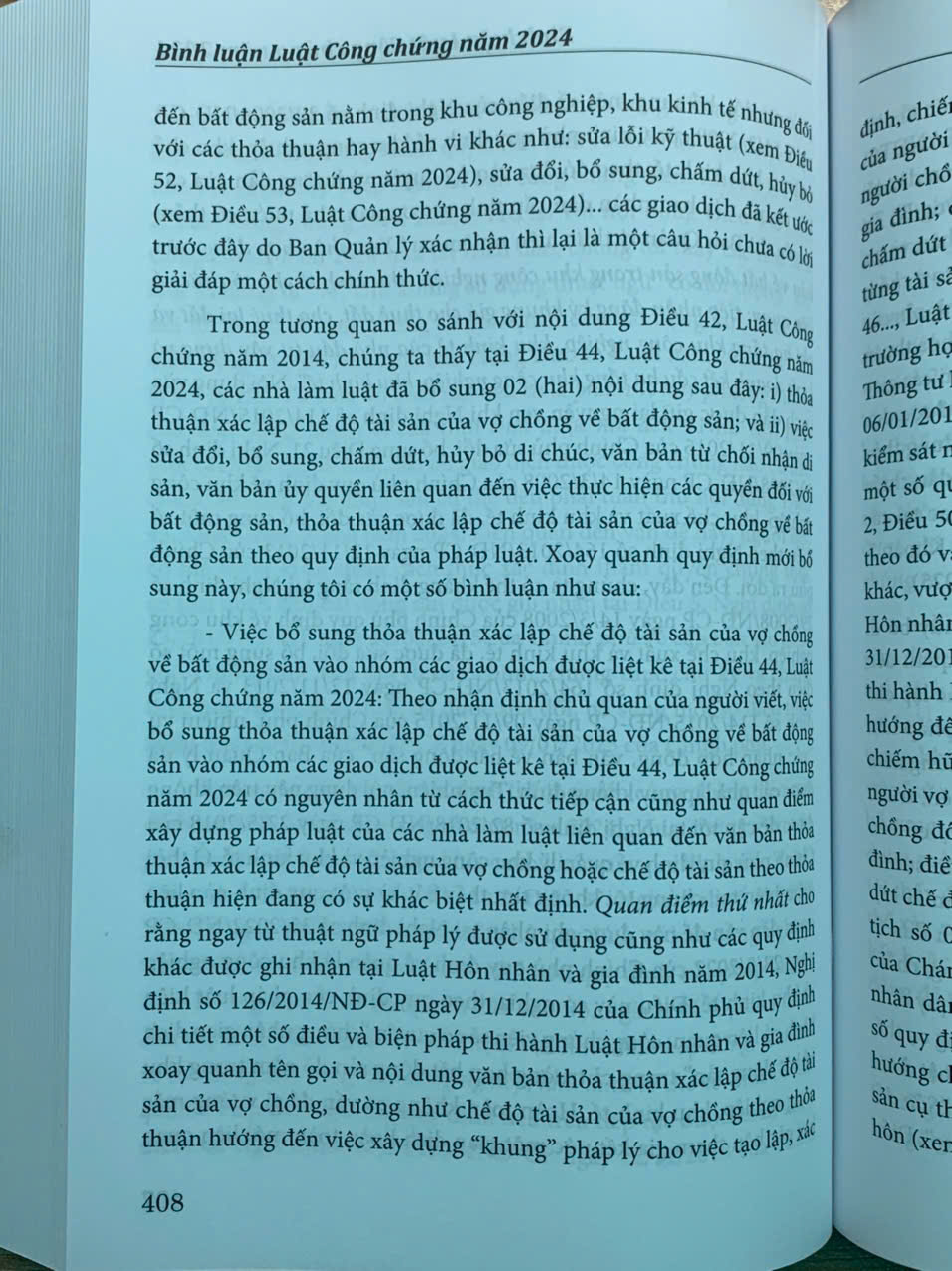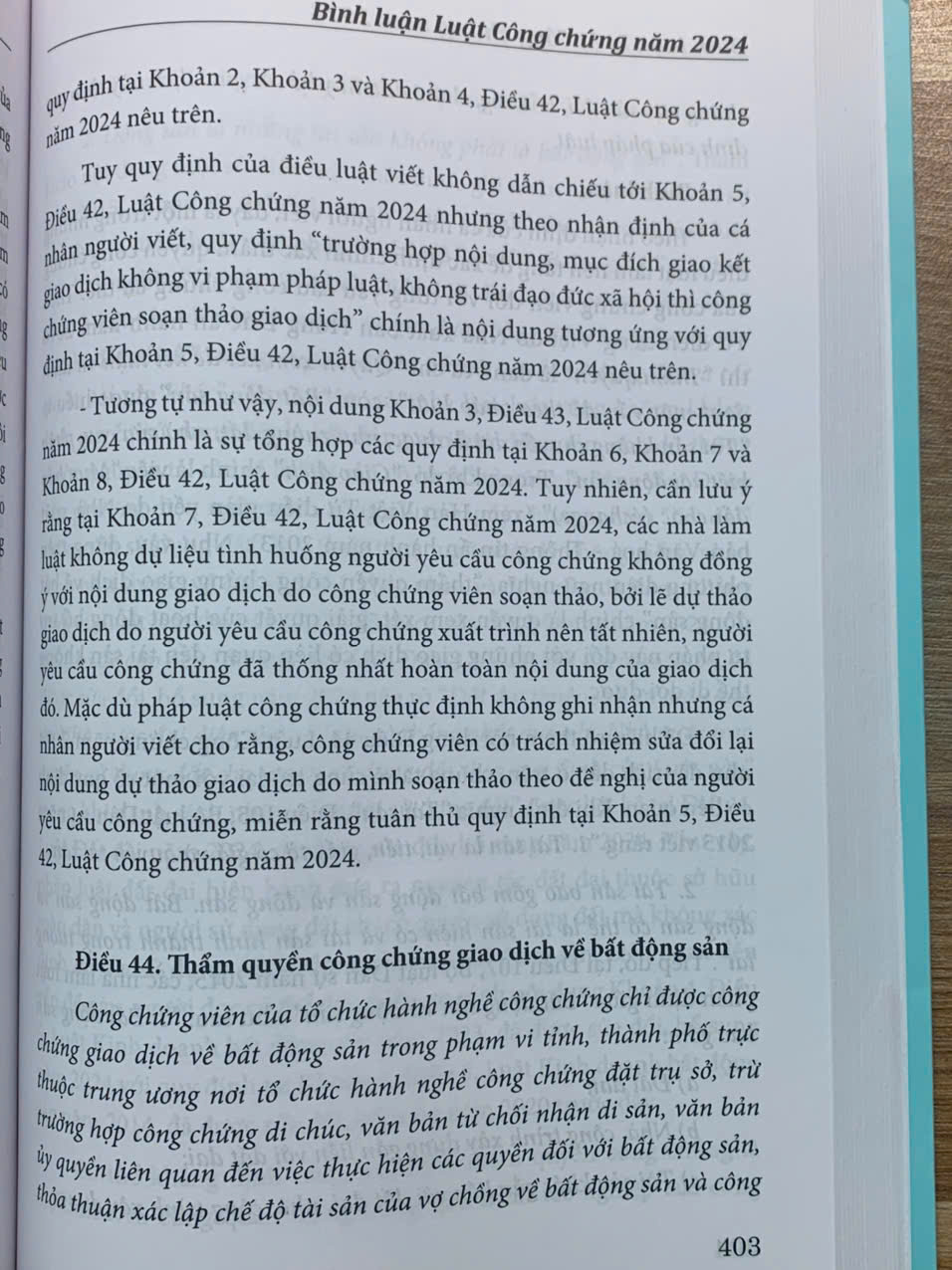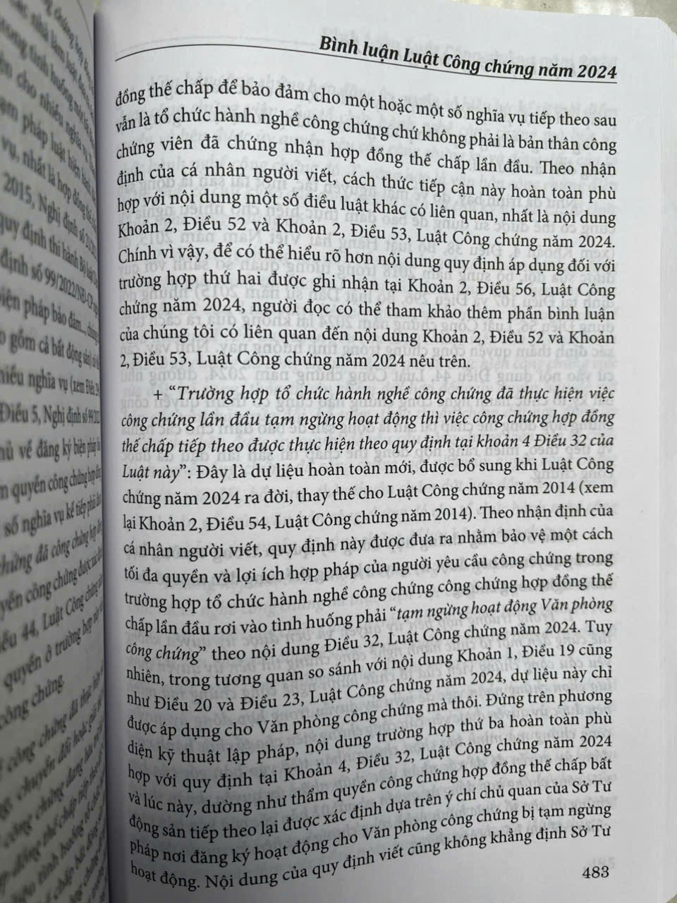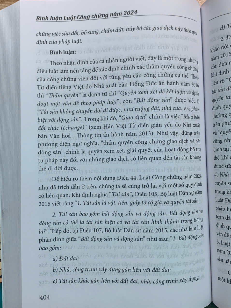 Nhằm cung cấp cho độc giả một góc nhìn toàn cảnh các quy định của Luật Công chứng năm 2024 trước những thay đổi nhanh chóng của thực tiễn cuộc sống cũng như việc sửa đổi, bổ sung rất nhiều đạo luật có liên quan trực tiếp hoặc gián tiếp đến hoạt động này, Nhà xuất bản Tư pháp xuất bản cuốn “Bình luận Luật Công chứng năm 2024”. Dưới nhãn quan của công chứng viên, các tác giả đã phân tích, bình luận một số nội dung của Luật chủ yếu dựa trên kinh nghiệm hành nghề thực tế của bản thân, yêu cầu, đòi hỏi khách quan của cuộc sống được đặt trong tương quan so sánh với nội dung những văn bản quy phạm pháp luật điều chỉnh một số lĩnh vực có liên quan mật thiết đến hoạt động công chứng.