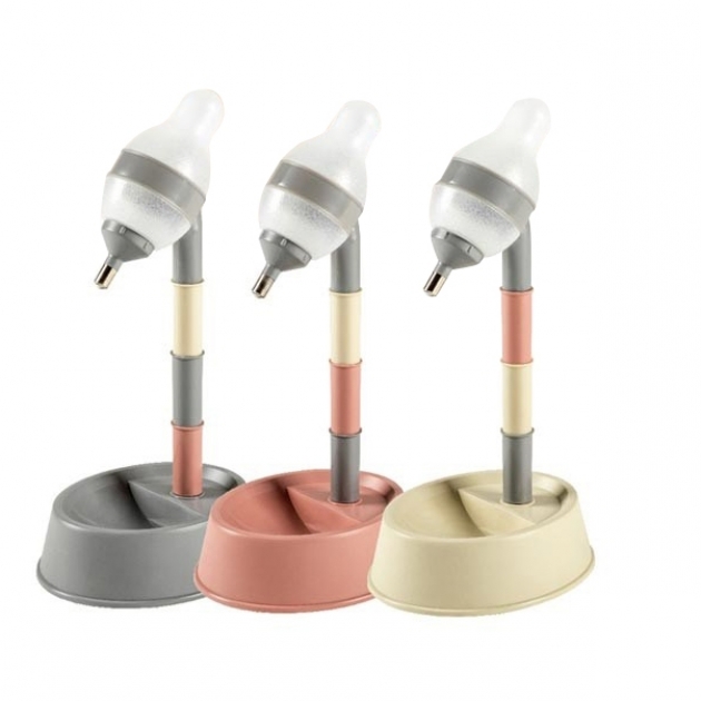 Bình nước kết hợp bát ăn có khấc Purmi có 3 màu: hồng, xám, kem với chất liệu thân thiện với môi trường (chất liệu propylene thường sử dụng trong các sản phẩm đựng đồ
