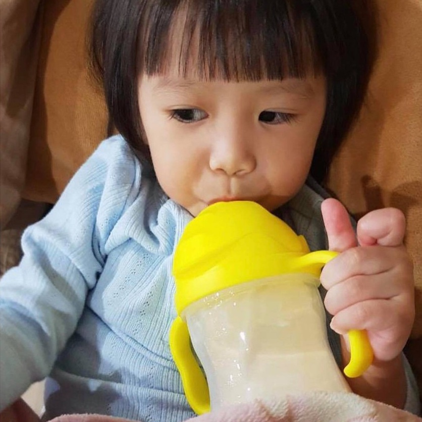 - Bình nước với thiết kế ống hút silicone an toàn, mềm dẻo dễ hút, không làm tổn thương nướu và cổ họng trẻ.