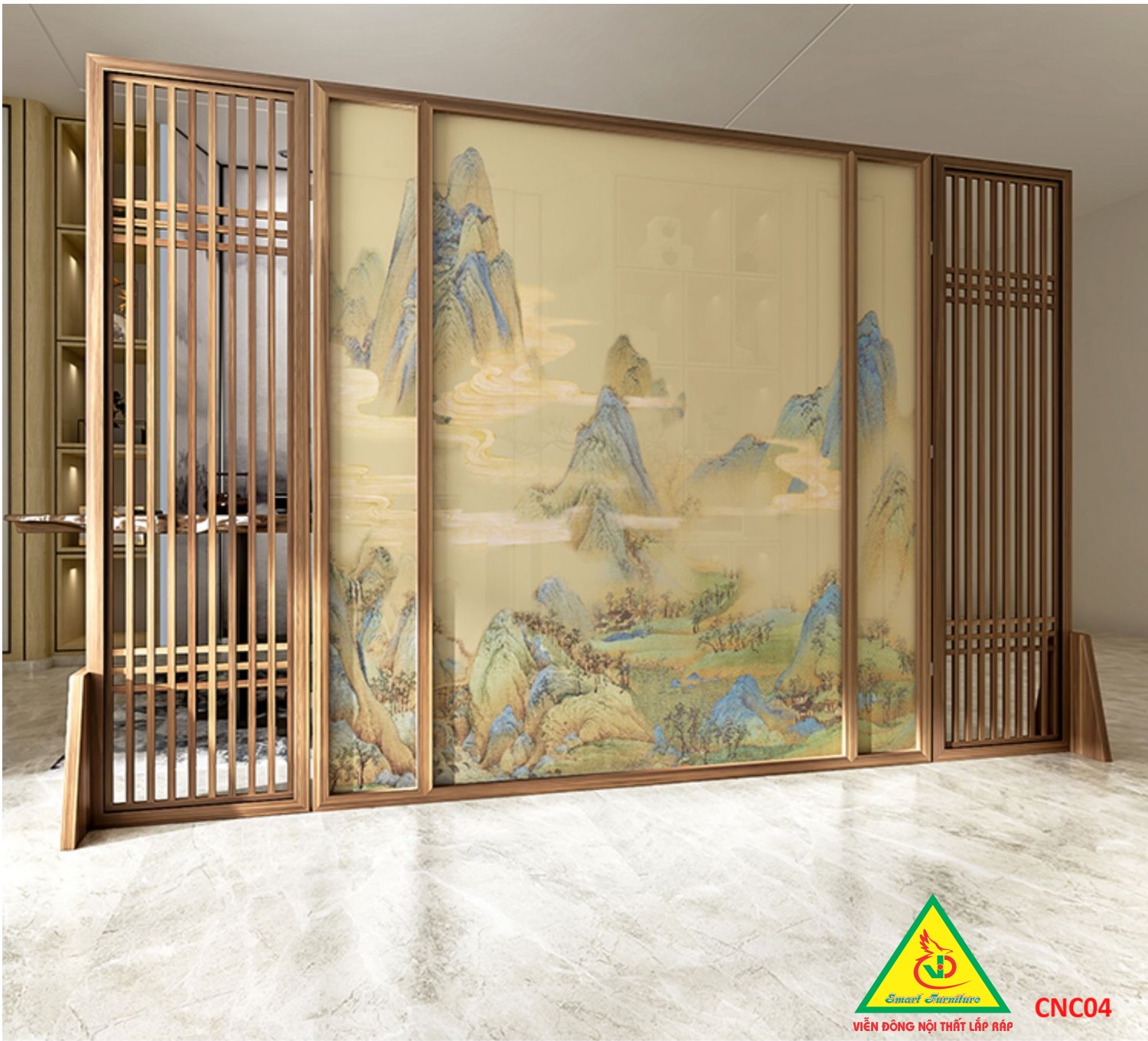 Phân chia không gian: Bình phong gỗ khung tranh giúp tạo ra các không gian riêng tư, phân chia các khu vực chức năng trong một căn phòng lớn mà không cần xây tường.