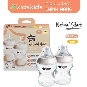 Bình sữa ty siêu mềm tự nhiên Tommee Tippee Natural Start 260ml, núm ty đi kèm 3-6 tháng (bình đôi)