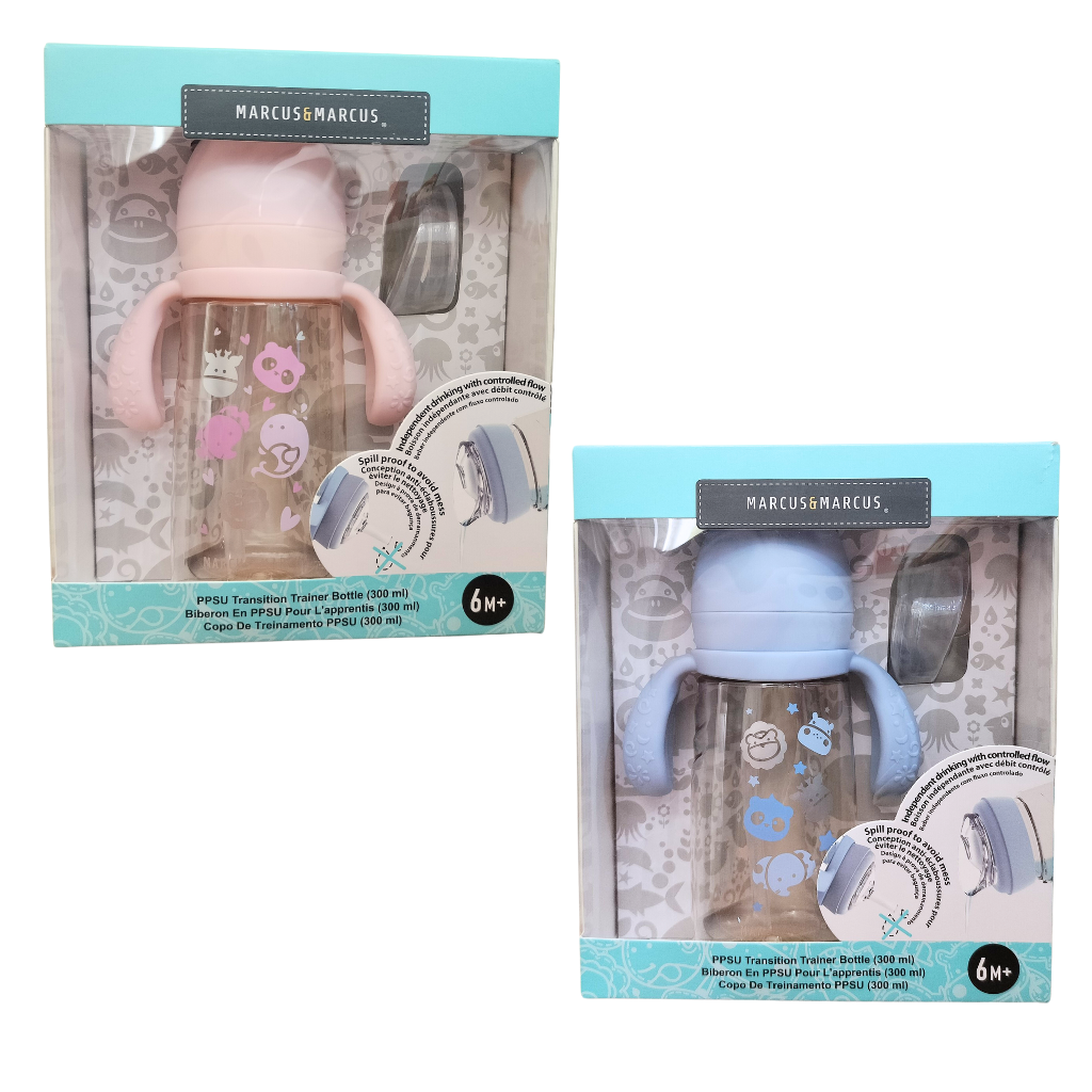 ✨Bình Tập Uống Chuyển Tiếp PPSU Marcus & Marcus 300ml Cho Bé Từ 6 Tháng – Xanh, Hồng