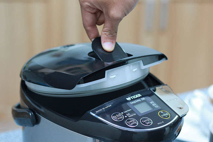 Bình thủy điện Tiger trang bị tính năng khóa an toàn đảm bảo người dùng không bị bỏng khi lỡ tay hay trong nhà có trẻ em nghịch phá. Chỉ khi mở khóa, bạn mới có thể rót nước ra khỏi bình.
